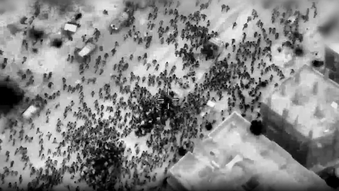 Imágenes aéreas difundidas por el ejército israelí mostraban lo que, según él, eran decenas de gazatíes rodeando los camiones de ayuda en la ciudad de Gaza.