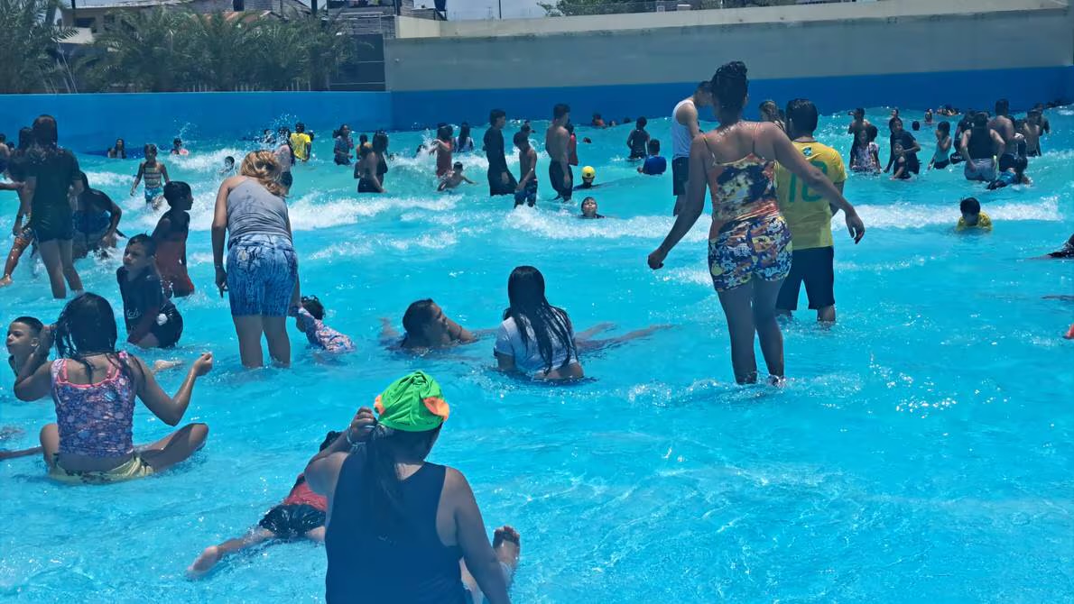 Guayaquileños que se quedaron en la ciudad buscan parques acuáticos para refrescarse ante las altas temperaturas