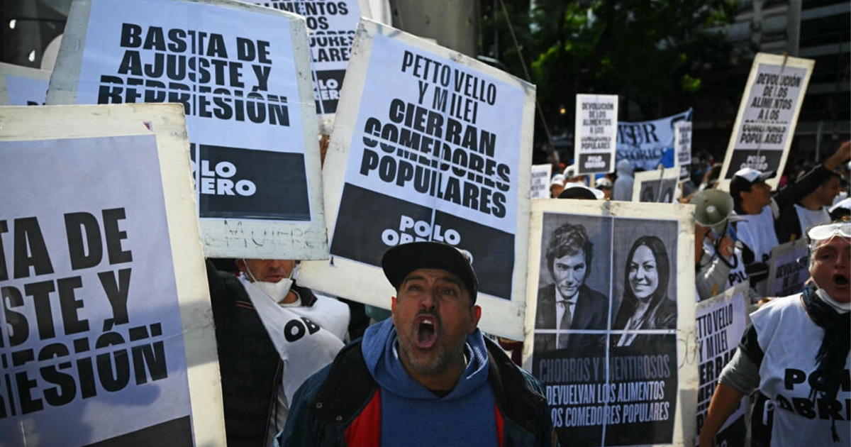 Ocho personas fueron detenidas y al menos media docena resultaron heridas durante una manifestación de organizaciones sociales en Buenos Aires contra las medidas económicas del presidente argentino Javier Milei y en reclamo de alimentos para los comedores populares.