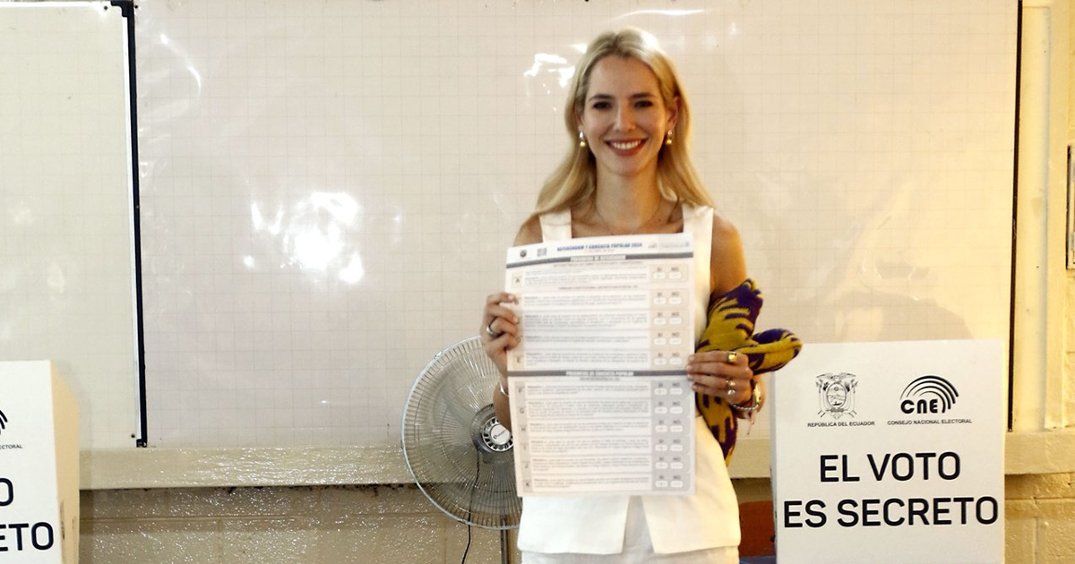 Acompañada de su esposo, el presidente Daniel Noboa, la primera dama Lavinia Valbonesi ejerció su derecho al voto cerca de las 11:00 de este domingo en la junta femenina 460 de la Unidad Educativa Fiscal Veintiocho De Mayo de Guayaquil.
