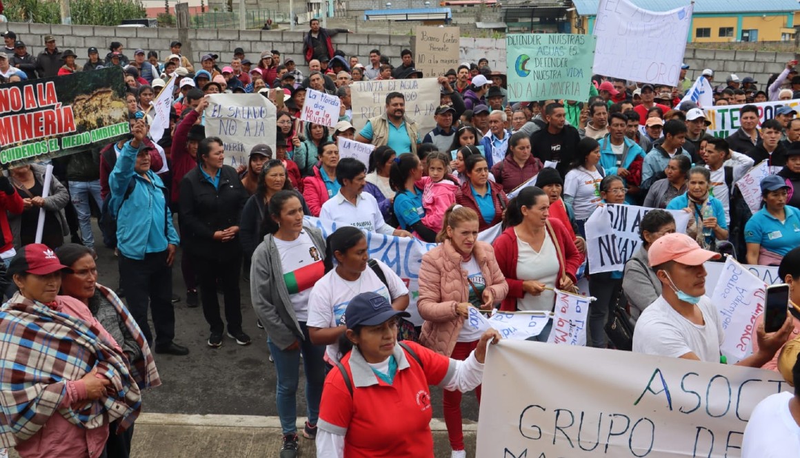 El día después del anuncio de los acuerdos en Canadá, la Confederación de Nacionalidades Indígenas del Ecuador (Conaie) criticó duramente las afirmaciones de Noboa y lanzó una movilización en apoyo a las protestas de Palo Quemado. “Los pueblos indígenas no vamos a pagar otros 500 años la desgracia del desarrollo que ha significado para nosotros únicamente la contaminación y la devastación de la vida de nuestros territorios”, dijo el presidente de Conaie, Leónidas Iza. Para empezar las operaciones, La Plata necesita recibir una licencia ambiental del Ministerio del Ambiente, Agua y Transición Ecológica (Maate). Este proceso incluye una consulta ambiental a los moradores de la zona sobre los posibles impactos negativos de la minería. La consulta está dirigida a los residentes de dos recintos de Palo Quemado, considerados en el área de influencia directa. Pero los de Las Pampas temen que la perforación les perjudique a ellos también. “Las Pampas también tiene territorio concesionado del proyecto”, alega Luis Martínez. Pero lamenta que ellos no puedan opinar. Como algunos de sus vecinos, Martínez está convencido de que a las voces críticas se les excluye de la consulta. Según los activistas del frente antiminero, solo 70 habitantes de 1100 podrán dar su opinión. Y mientras en Las Pampas la comunidad se opone mayoritariamente a la minería, en Palo Quemado hay residentes que la ven como una oportunidad. “La población está incrementando y ya no hay fuentes de trabajo,” le dice a América Futura Víctor Tocte, presidente de la Junta Administradora de Agua de Palo Quemado–Santa Rosa. “Si hay una inversión extranjera que venga y que dé oportunidades a nuestros hijos (…) yo lo veo bien.”