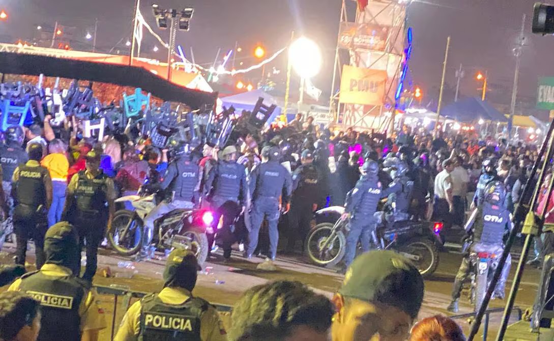 Decenas de personas que llegaron a la explanada ubicada frente del hospital general Seguro Social (IEES) para ver la presentación del cantante mexicano Christian Nodal vivieron momentos de pánico ante una supuesta alerta de explosivo.