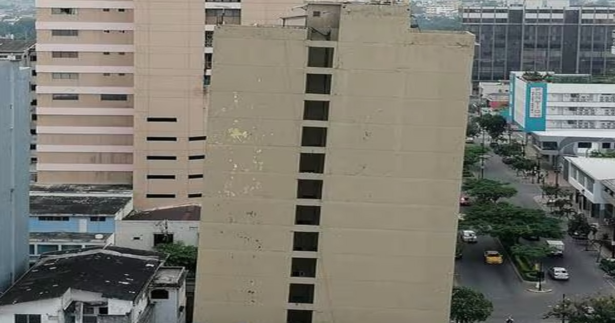 Un estudio determinará cuál es la solución más económica en torno al edificio ubicado en la avenida 9 de Octubre y Esmeraldas, que evidencia hundimiento e inclinación, en el centro de Guayaquil.
