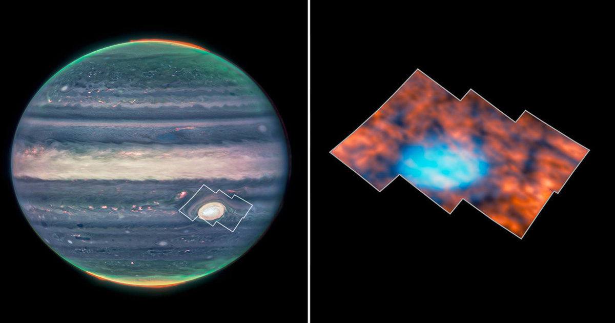 Un equipo internacional de físicos planetarios y astrónomos que operan el telescopio espacial James Webb (JWST, por sus siglas en inglés) de la NASA se sorprendió al descubrir que la atmósfera superior sobre la región de la icónica Gran Mancha Roja de Júpiter alberga una variedad de estructuras intrincadas que alteran la forma y la estructura de la atmósfera superior de esta región joviana.