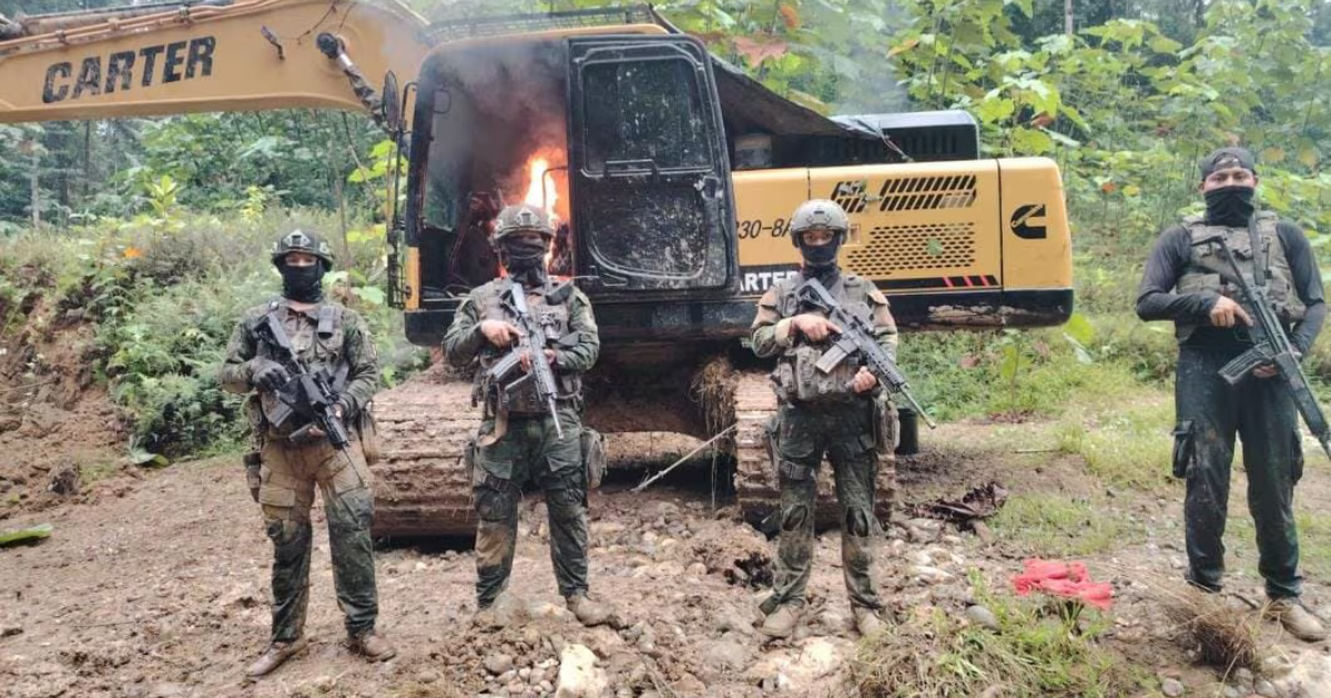 Allí retuvieron dos excavadoras, dos clasificadoras tipo Z y 300 galones de combustibles derivados de hidrocarburos. La maquinaria pesada fue inhabilitada por personal militar.
