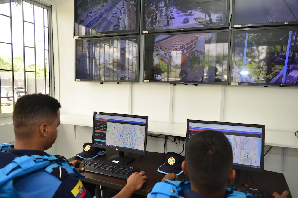 En su interior tiene varios monitores en los que se visualizan las 405 cámaras ubicadas en el sector de Urdesa. Allí también hay control con el centro de operaciones de Segura EP.