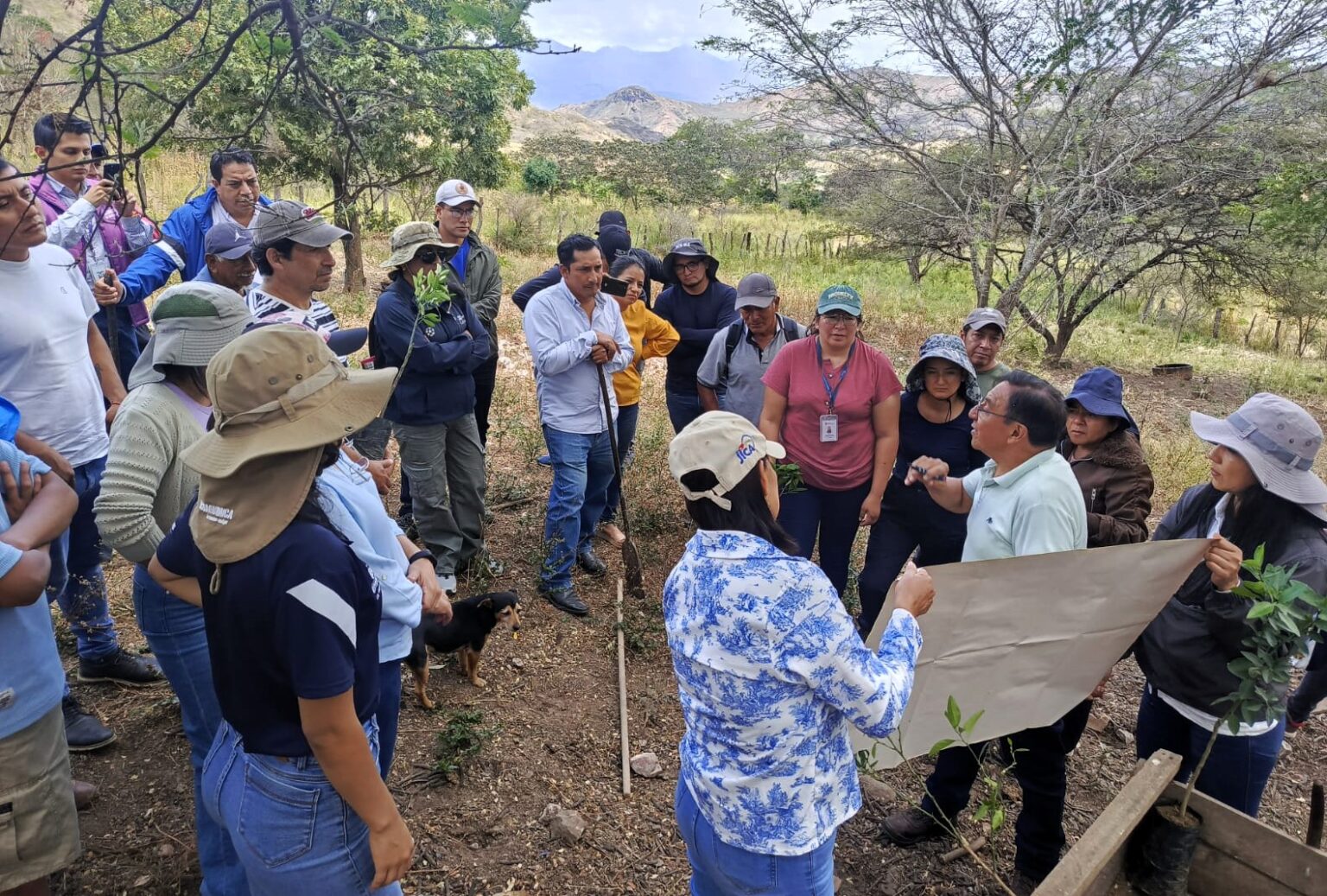 En esta primera actividad, se desarrolló una capacitación práctica en campo, con la participación de 15 productores locales y 15 técnicos de los Distritos MAGP de El Oro, Zamora y Loja, quienes compartieron conocimientos y metodologías agroecológicas aplicadas al manejo agroforestal.