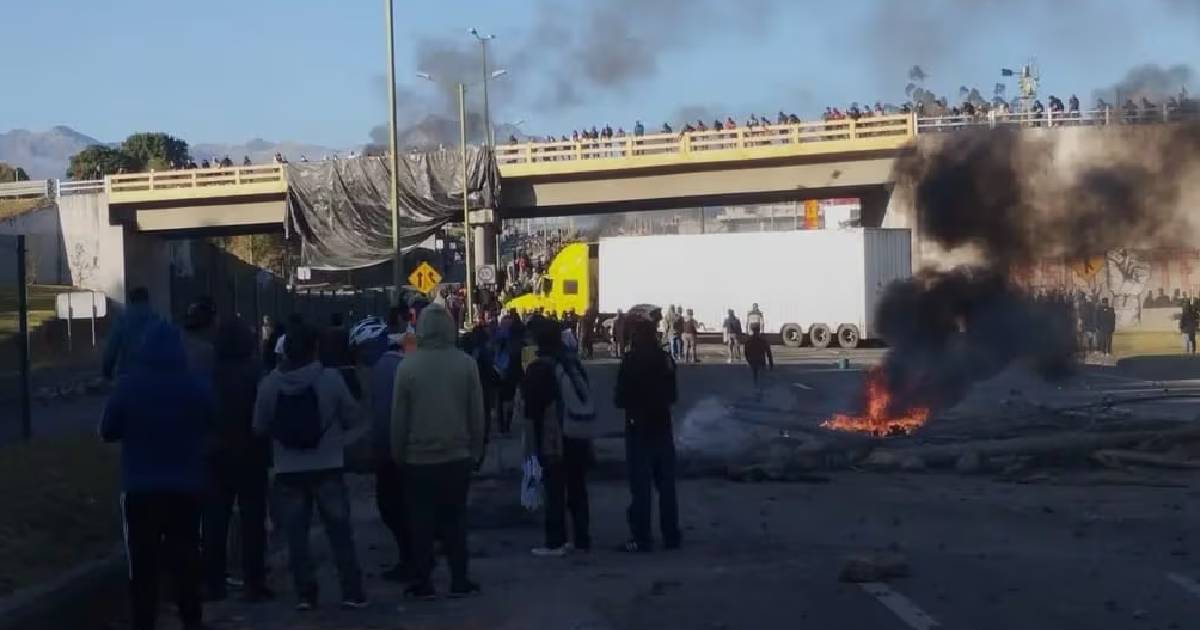 Armados con piedras de gran tamaño, los manifestantes perpetraron un ataque al convoy sin mediar que en los automotores se movilizaban personas.