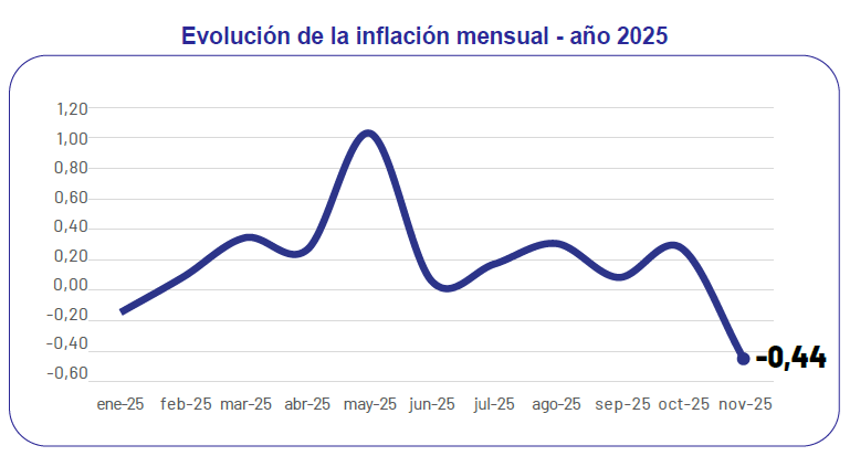 La inflación mensual de noviembre de 2025 fue de -0,44%, una reducción significativa que se traduce en un alivio directo para los bolsillos de las familias ecuatorianas. Este registro confirma que Ecuador continúa manteniendo una inflación baja y estable, muy por debajo de la de otros países de la región.