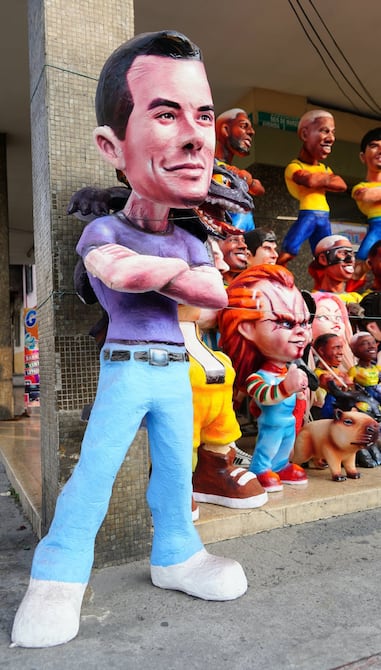 En otro punto de la avenida, John Paredes detalla que su producción comienza en mayo y ahora están en la etapa de pintura. Su equipo de cinco personas saca unos 20 monigotes diarios.