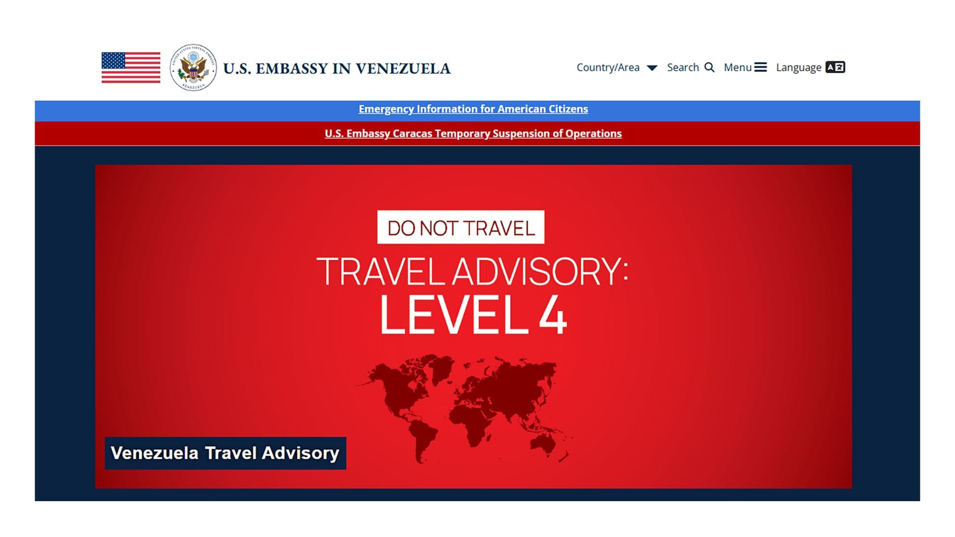 La embajada también enfatizó que, desde marzo de 2019, el Departamento de Estado procedió con el retiro de la totalidad de su personal diplomático de su antigua sede en Caracas, lo que conllevó a la interrupción de todas las operaciones consulares. Debido a que estos servicios de rutina y emergencia continúan suspendidos, “el gobierno estadounidense no puede brindar asistencia de emergencia a sus ciudadanos que se encuentren en Venezuela”.