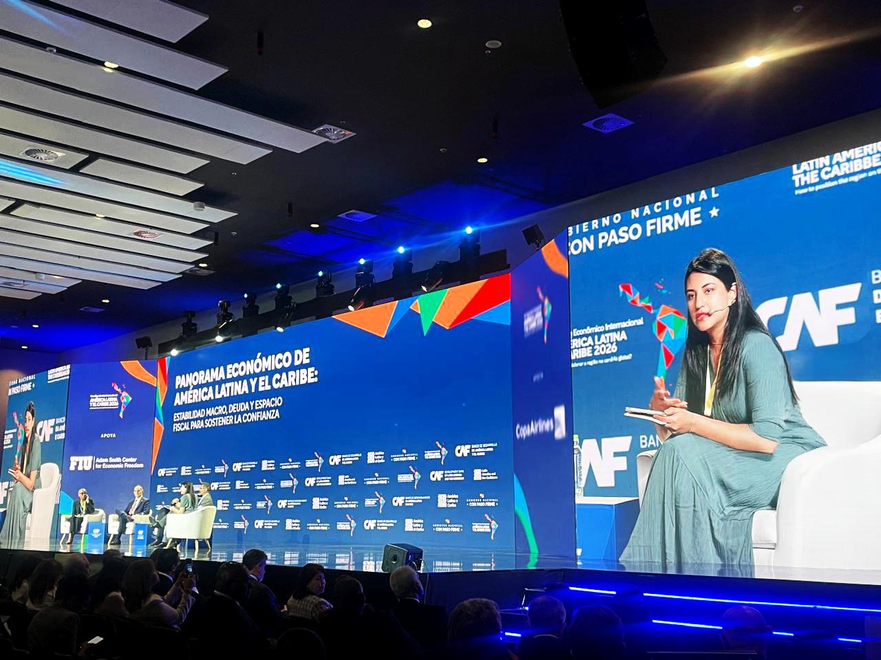 En el marco de una ponencia en el Foro Económico Internacional, que se desarrolla en la ciudad de Panamá, la ministra de Economía y Finanzas, Sariha Moya, destacó las acciones que ha implementado el gobierno del presidente Daniel Noboa para ordenar las finanzas públicas del Ecuador.