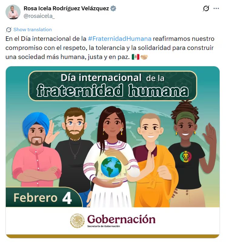 A través de su perfil oficial en la red social X, Rosa Icela Rodríguez, quien se desempeña como secretaria de Gobernación de México, resaltó los principios que motivan esta celebración: