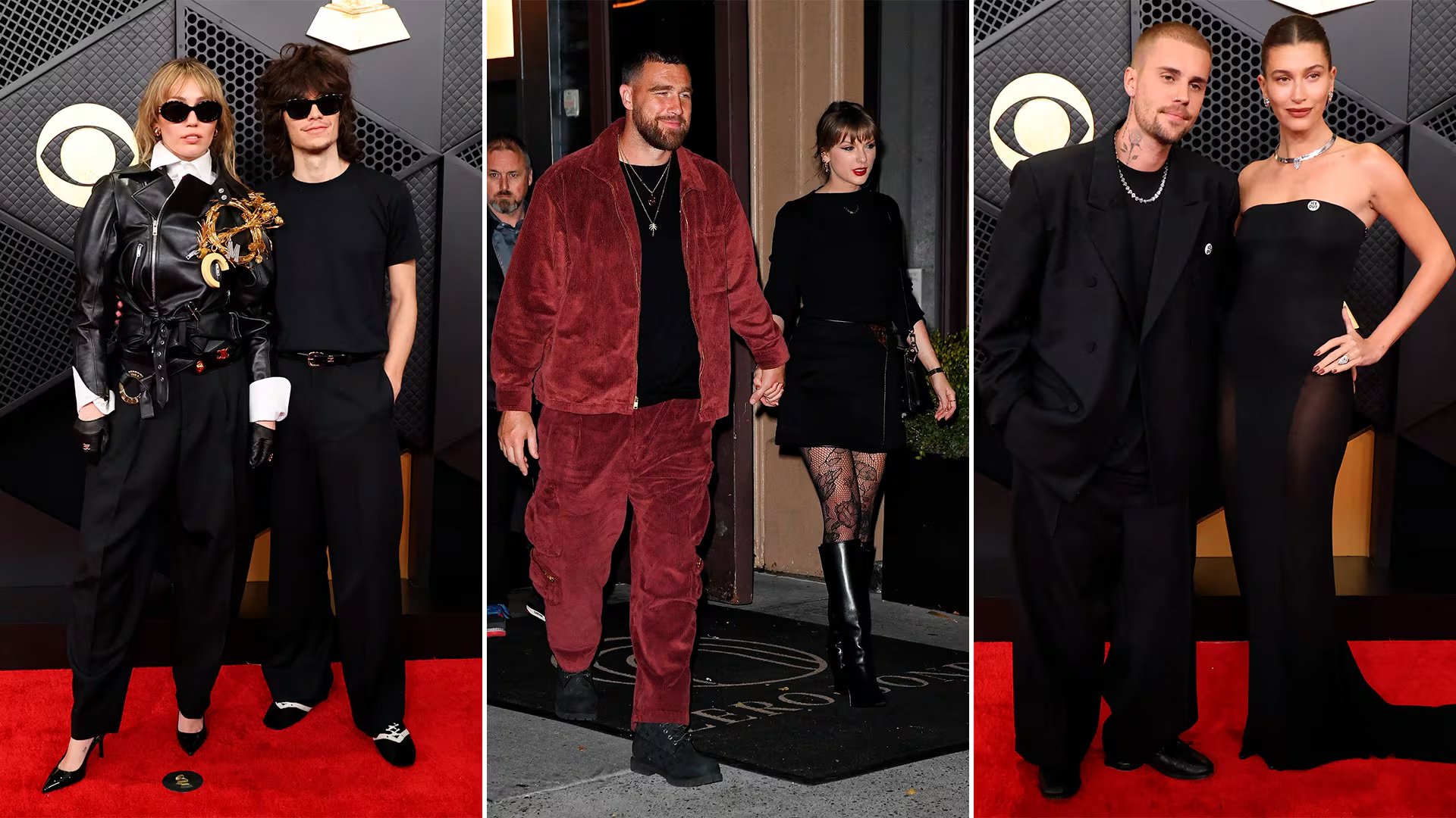 Para sus salidas nocturnas, la estrella del pop y el jugador de la NFL han demostrado una gran flexibilidad estilística. Travis Kelce sorprendió con un conjunto de pana en tono burdeos, integrado por una chaqueta y pantalones de corte amplio, complementado con botas negras y cadenas doradas.