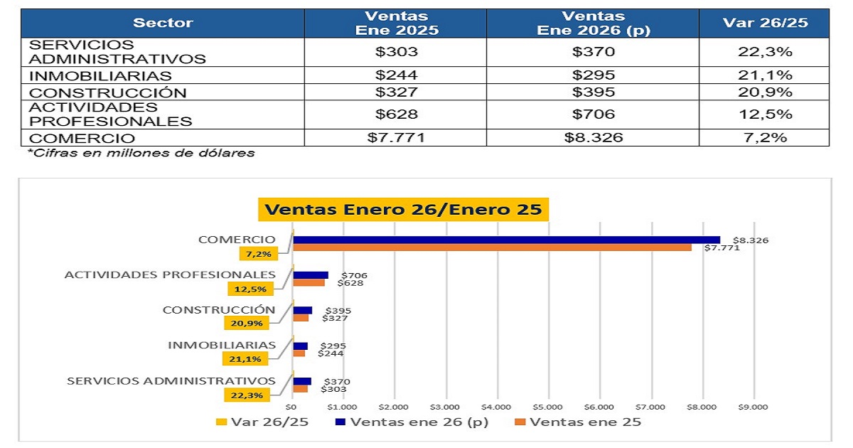 Esto significa que alcanzarían los USD 20.391 millones, frente a los USD 19.097 millones registrados en el mismo mes del año anterior. Los datos proyectados muestran un desempeño favorable en varios sectores de la economía durante el mes de enero: