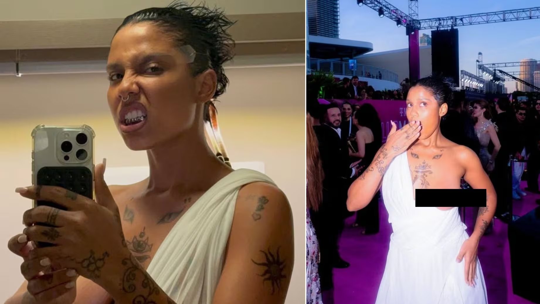 En medio del revuelo mediático, la dominicana aprovechó las entrevistas en la alfombra roja para profundizar en el significado de su elección. Tokischa dejó claro que su imagen es una herramienta de reivindicación personal y una defensa de la naturalidad de su cuerpo tal cual es, enviando un mensaje directo a quienes critican su apariencia.