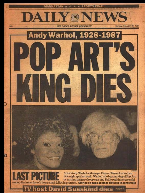 La tapa del New York Post al día siguiente de la muerte de Andy Warhol