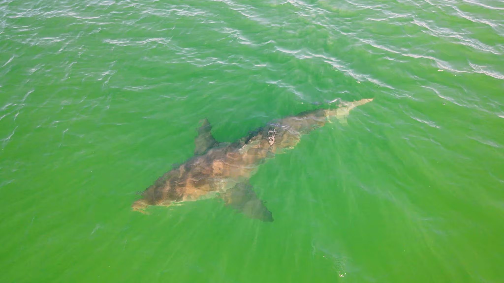 Dada la fuerza del animal, su identidad fue incierta inicialmente. Wier sospechaba que podría tratarse de un marrajo, un tigre de gran tamaño o un ejemplar gigante de tiburón oscuro. Para resolver el misterio, el equipo desplegó un dron sobre el área de combate. Al visualizar las imágenes, la sorpresa fue total: