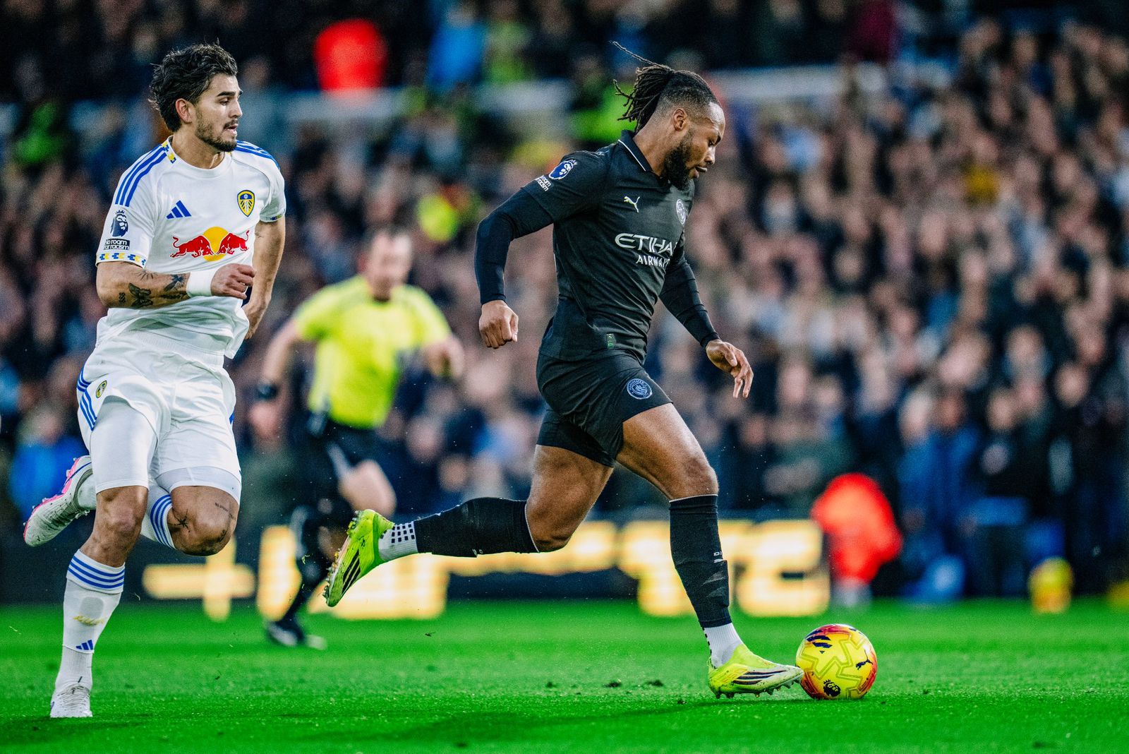 A pesar de haber perdido solo uno de sus últimos 27 partidos contra recién ascendidos —derrota que, eso sí, fue ante el propio Leeds—, al City le costó entrar en el partido, pero mostró la fuerte mentalidad que posee y que resulta bastante amenazante para el Arsenal. En el tiempo añadido de la primera parte, Semenyo adelantó al City.