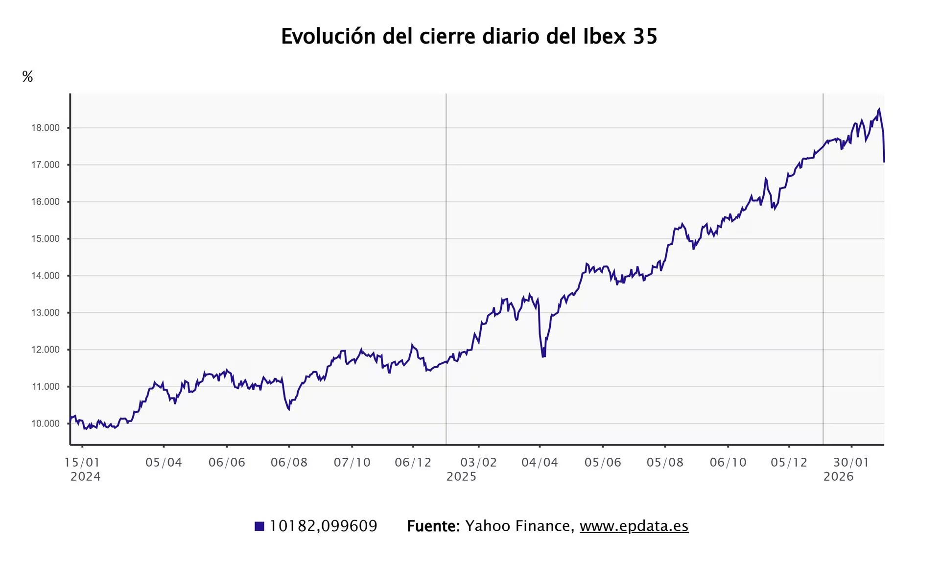 Al cierre de la sesión, el índice principal de la bolsa española se situó en los 17.062,4 enteros, rozando peligrosamente el soporte psicológico de las 17.000 unidades. Este escenario se produce en medio de una agudización del conflicto geopolítico en Oriente Medio, con tensiones crecientes que involucran directamente a Estados Unidos, Israel e Irán.