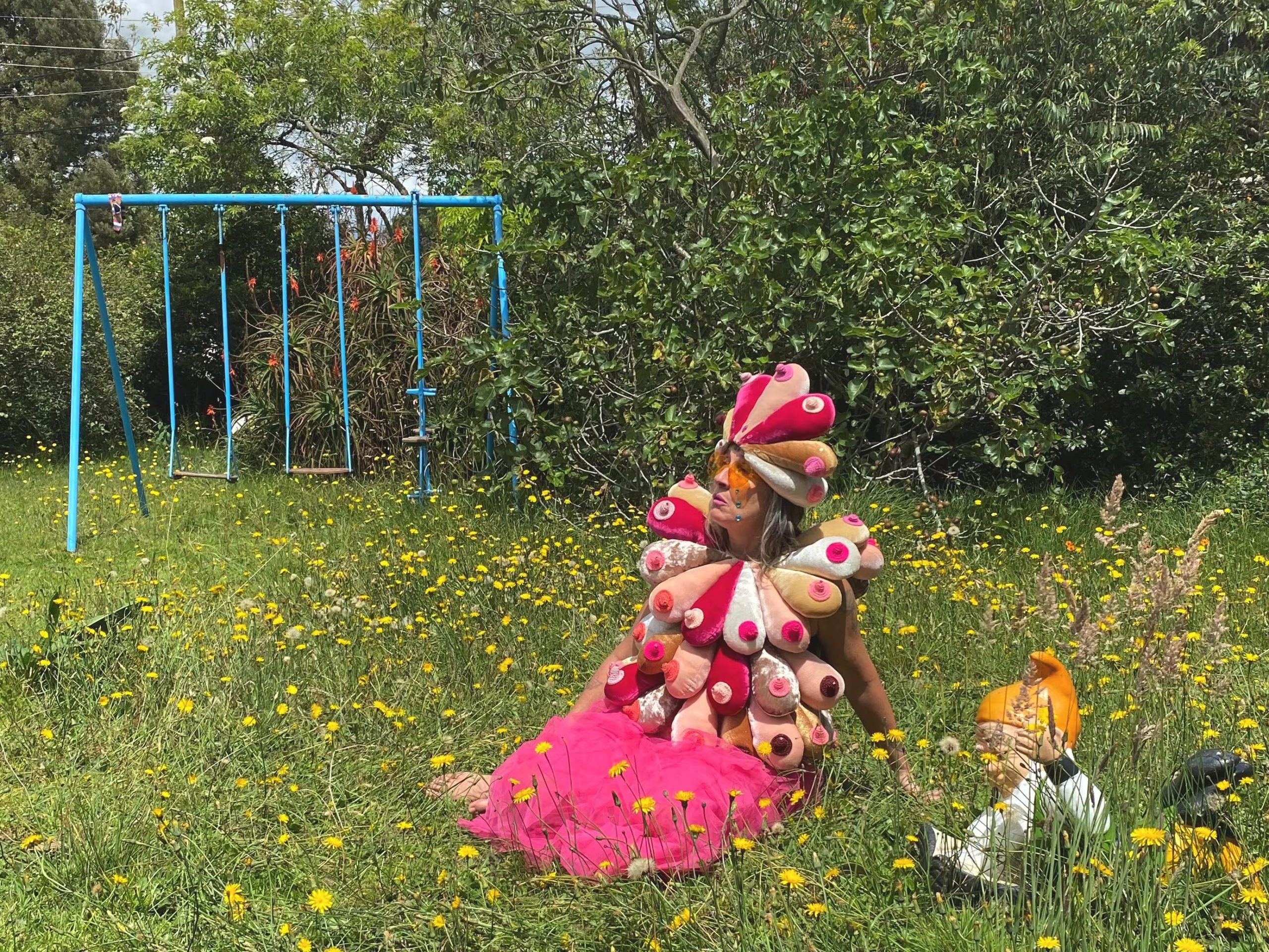 La escenografía se destaca por las “tetas de cerámica” de las que fluyen cristales y perlas, símbolo de maternidad y vitalidad.