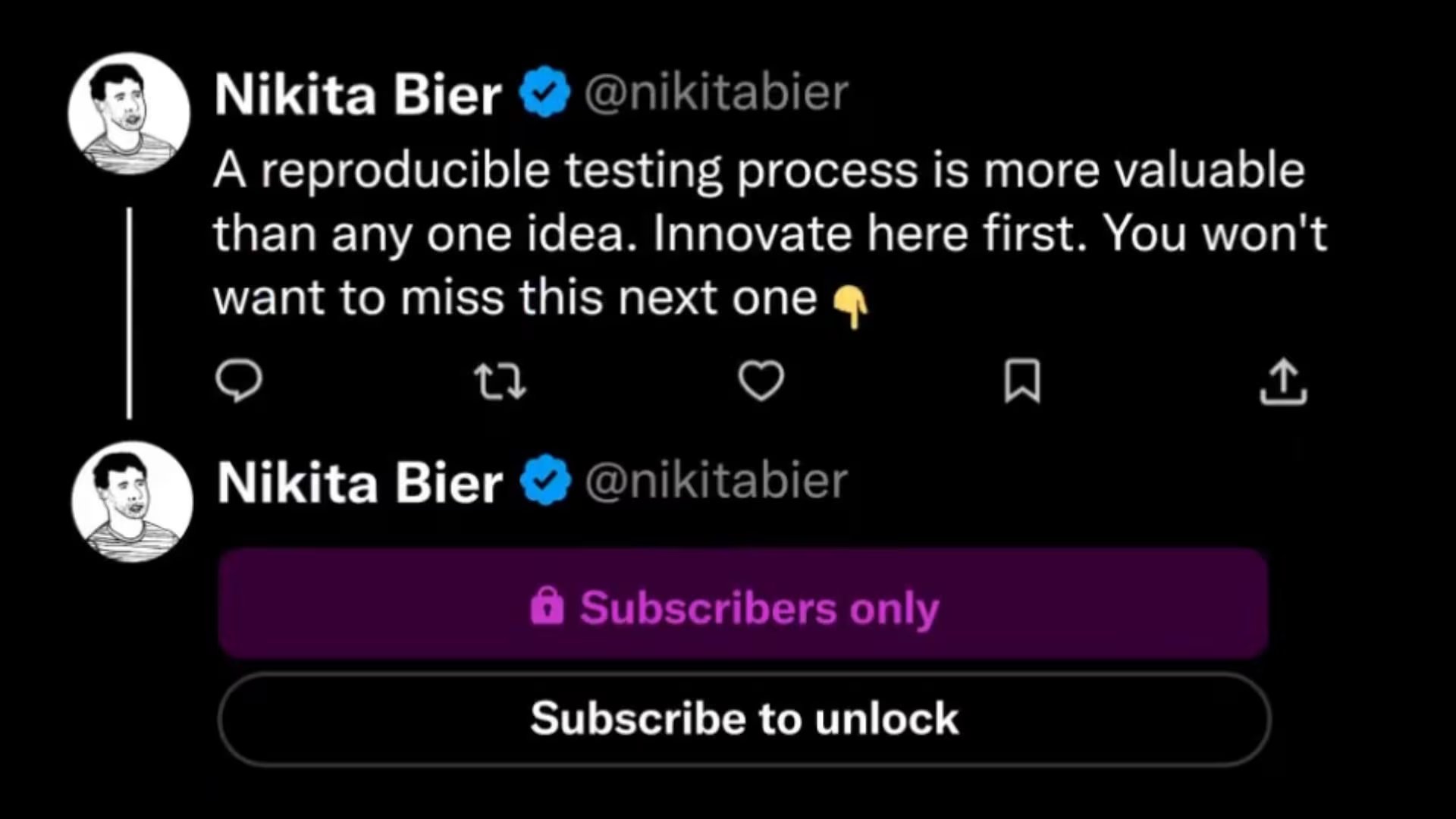 El directivo de Producto de la red social X, Nikita Bier, ha presentado recientemente una innovadora funcionalidad destinada a los generadores de contenido. Para demostrar el funcionamiento de los hilos exclusivos, Bier compartió un mensaje motivador en su cuenta personal: