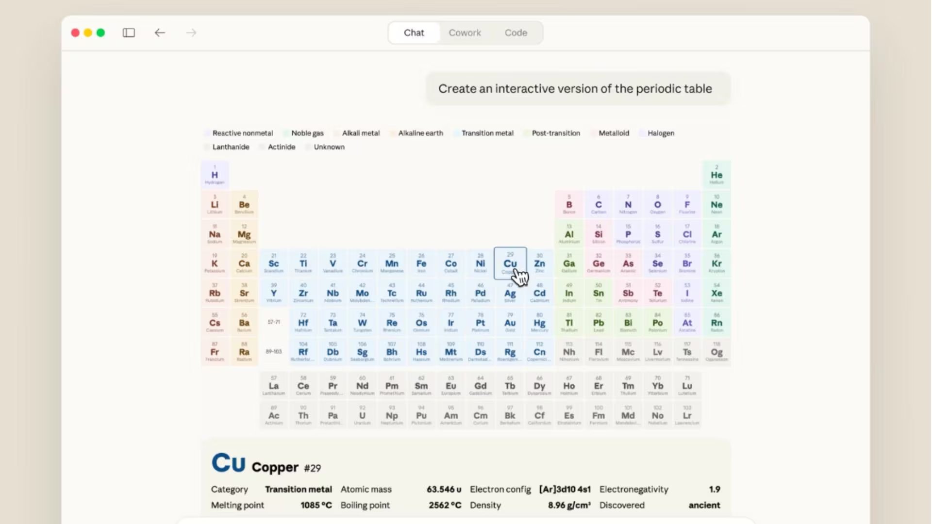 Un ejemplo práctico de esta tecnología es la capacidad de solicitar una tabla periódica interactiva para fines académicos. En este escenario, Claude genera una estructura que detalla las propiedades de cada elemento químico en cuestión de pocos minutos, sirviendo como una herramienta educativa potente y accesible.