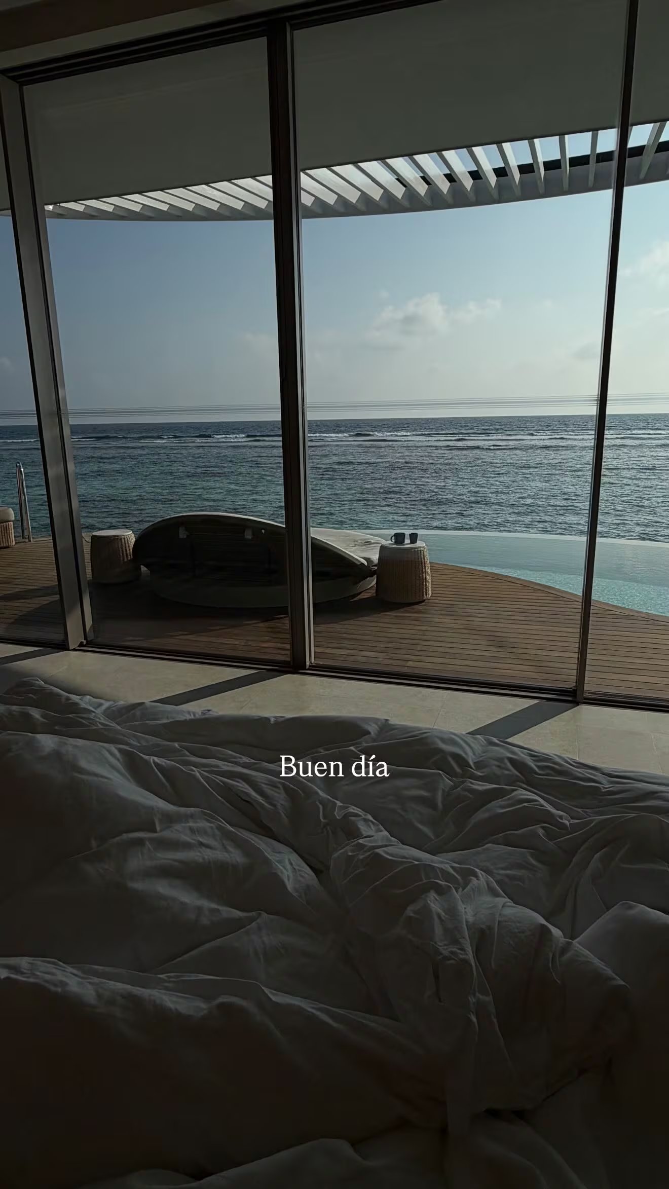 La conductora se encuentra alojada en la Villa Sunset Beach del prestigioso Ritz-Carlton Maldives. Se trata de una suite de 155 metros cuadrados que dispone de una piscina privada, terraza propia, área de estar y amplios ventanales que van de piso a techo, permitiendo una vista ininterrumpida. La habitación principal cuenta con una cama King y un sofá cama, todo complementado con lencería de alto estándar. Este resort, edificado sobre las aguas turquesas del Océano Índico, ofrece panorámicas privilegiadas de los atardeceres y una salida directa hacia la playa.