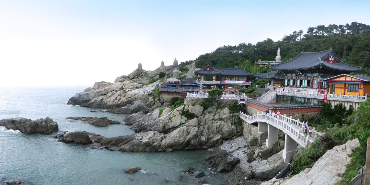 A diferencia de la gran mayoría de los templos budistas en la nación coreana, que suelen encontrarse en zonas montañosas, Haedong Yonggungsa destaca por estar erigido sobre los riscos que miran directamente al mar. Esta particularidad lo convierte en un punto de peregrinación muy codiciado tanto por viajeros curiosos como por fieles devotos. El contraste visual de sus figuras blancas contra el entorno costero y la armonía entre el complejo y la naturaleza subrayan la importancia del sitio, cuya ubicación fue seleccionada bajo los preceptos del pungsu jiri (similar al feng shui). Este sistema de creencias considera que el emplazamiento entre las montañas y el mar es extremadamente favorable para atraer la prosperidad espiritual y material.