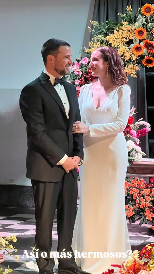 En cuanto a su arreglo personal, la novia prefirió llevar el cabello suelto con ondas naturales y un maquillaje sutil. Complementó su estilo con pendientes largos en tonos claros, prescindiendo voluntariamente de accesorios clásicos como la tiara o el velo, reafirmando una estética moderna y auténtica.