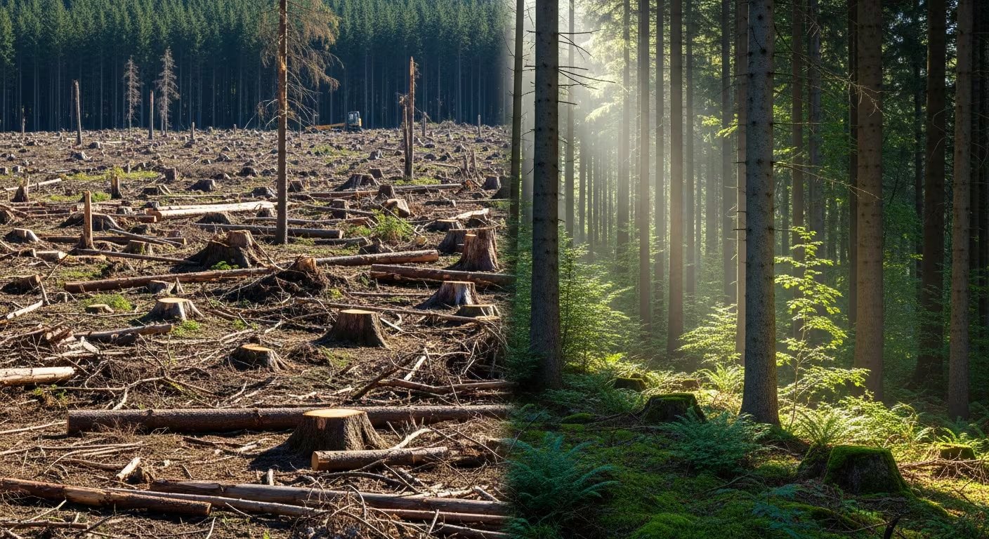 Simard advierte que las extracciones más intensivas generan impactos mayores, sobre todo en bosques antiguos: “La eliminación intensiva redujo el carbono total del ecosistema en 42%, y el carbono sobre el suelo fue una quinta parte que en los bosques intactos”. Agrega que una mayor dominancia de una única especie, como el pino de Oregón, hace que el bosque sea más vulnerable a plagas, enfermedades y sequías extremas.