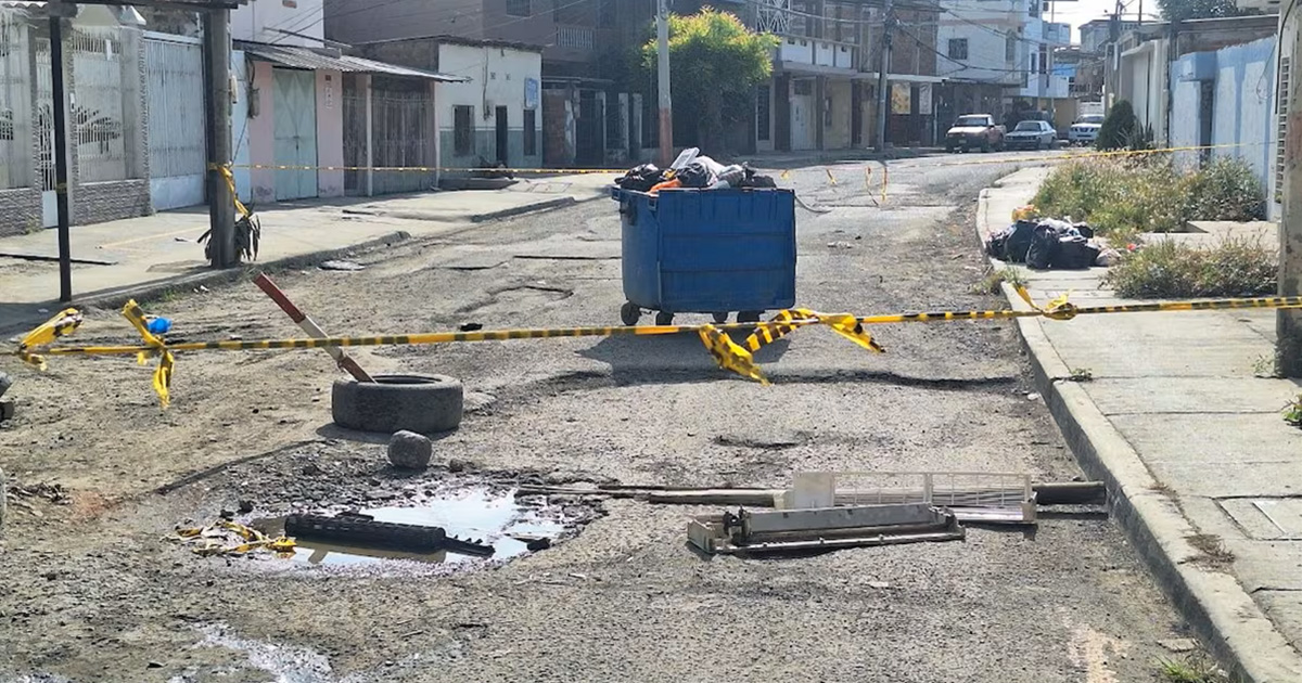 En la calle Venezuela, los moradores bloquearon el paso con un contenedor, fundas de basura y cintas de peligro. La medida busca llamar la atención ante la falta de recolección de desechos y el deterioro de la vía.