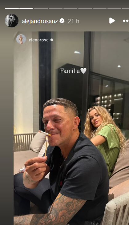 Fue una fotografía compartida por la cantautora Elena Rose la que disipó cualquier duda sobre la estabilidad de la relación entre Sanz y Candela, en En la imagen, ambos posan con una actitud relajada y comparten un mensaje de afecto. “Familia”, escribió Elena Rose en la publicación, subrayando la cercanía y complicidad entre los dos.