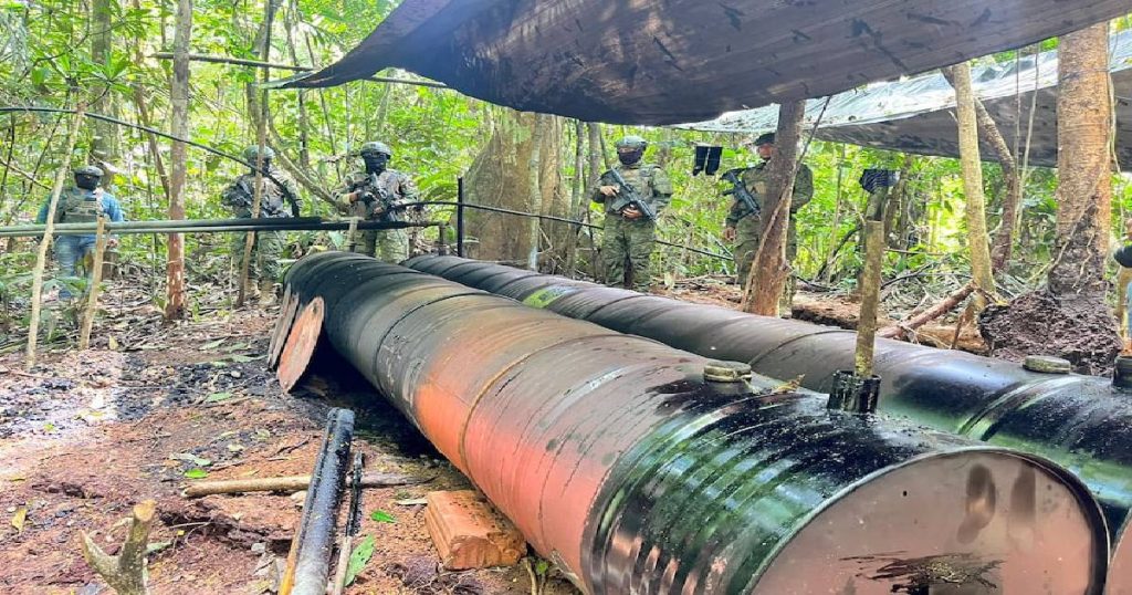 Una refinería artesanal de crudo que presuntamente abastecía de combustible a laboratorios clandestinos fue localizada y desmantelada por el Ejército Ecuatoriano en el sector de Peña Blanca, provincia de Sucumbíos, como parte de las operaciones que se ejecutan en la frontera norte. Según información de inteligencia militar, el complejo clandestino contaba con una piscina donde […]